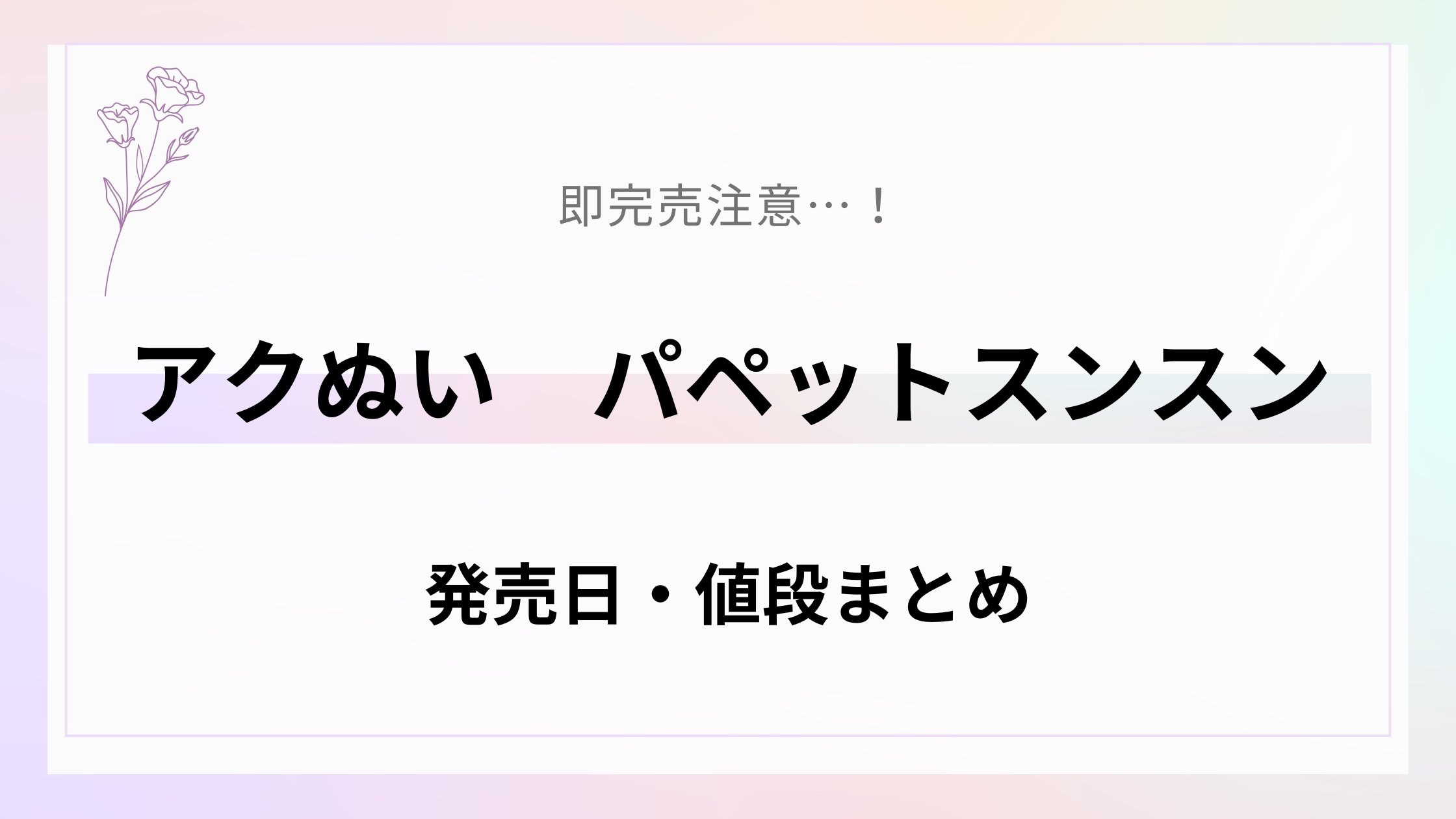 「アクぬい パペットスンスンって何?」「発売日はいつ?値段は高いの?」そんな疑問を持って検索してきた方も多いのではないでしょうか。最近は“推し活”の進化とともに、ぬいぐるみやアクリルスタンドを組み合わせた新しい楽しみ方がどんどん広がっています。その中でも注目を集めているのが、アクスタとぬいぐるみを融合させた“アクぬい”というアイテムです。