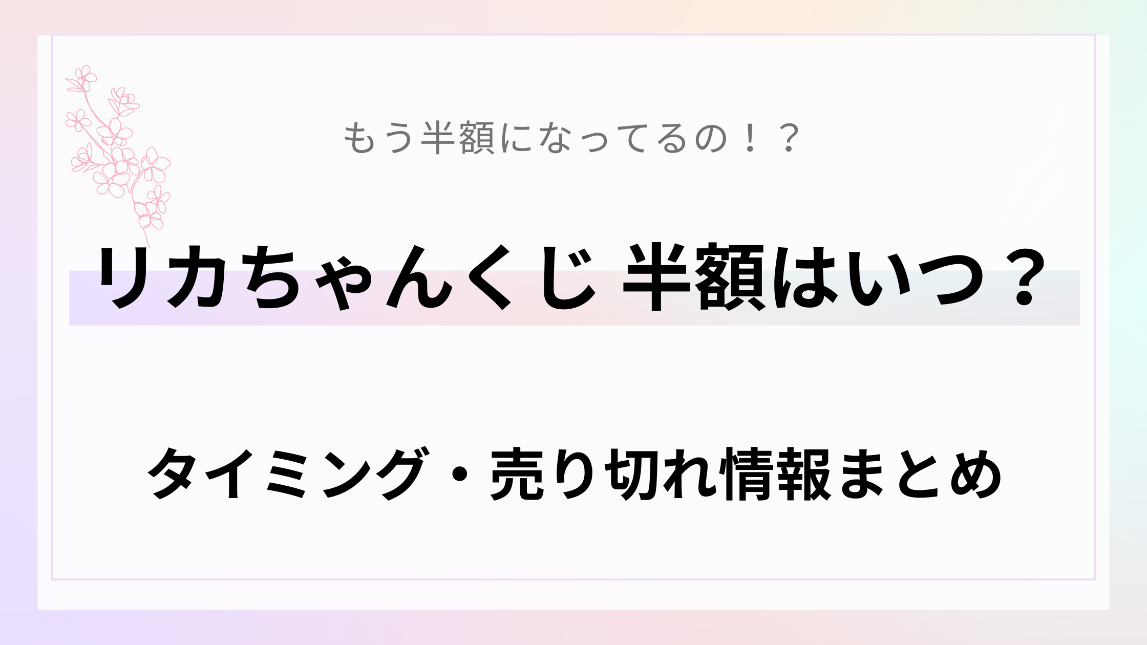 この記事では、リカちゃんくじ(リカちゃんくじ×セーラーズ)の基本情報から、半額や30%オフになるタイミング、在庫や売り切れのリアル事情、そして欲しい景品を引くコツまで徹底的に解説します。結論から言うと半額は存在しますが、狙うにはコツとタイミングが重要です。お得に楽しみたい方はぜひ最後までチェックしてください。